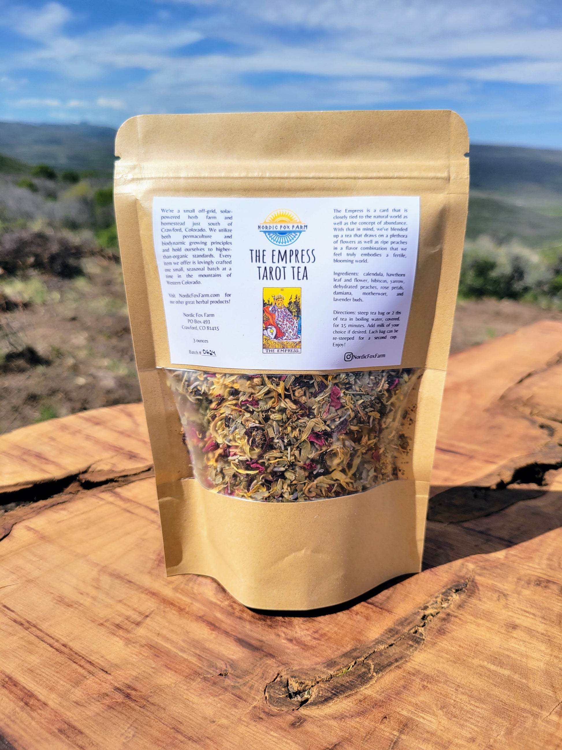 The Empress is a card that is closely tied to the natural world as well as the concept of abundance. With that in mind, we've blended up a tea that draws on a plethora of flowers as well as ripe peaches in a flavor combination that we feel truly embodies a fertile, blooming world.