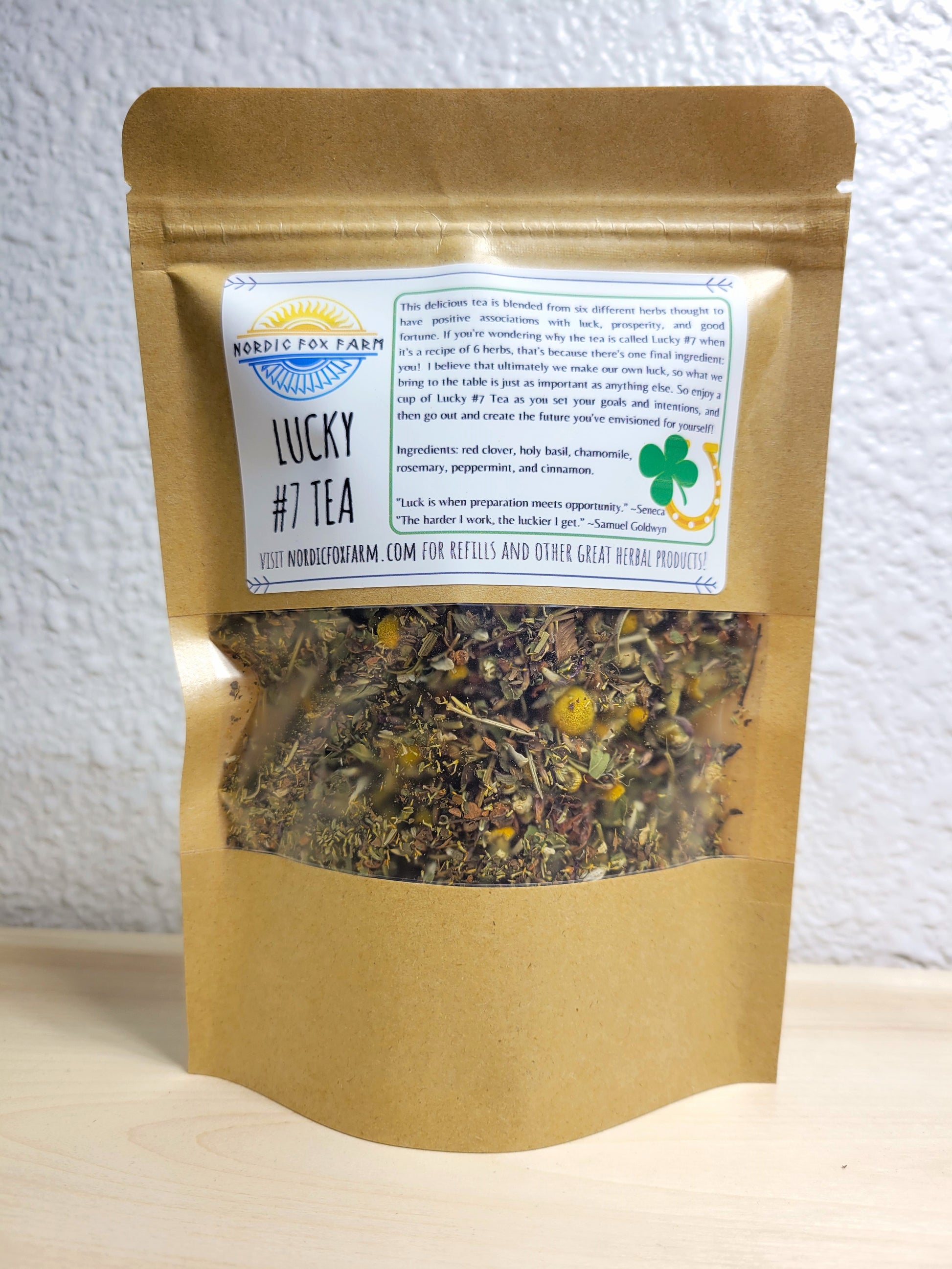 This delicious tea is blended from six different herbs thought to have positive associations with luck, prosperity, and good fortune. If you're wondering why the tea is called Lucky #7 when it's a recipe of 6 herbs, that's because there's one final ingredient: you! I believe that ultimately we make our own luck, so what we bring to the table is just as important as anything else. So enjoy a cup of Lucky #7 Tea as you set your goals and intentions, and then go out and create the future you've envisioned for yourself!